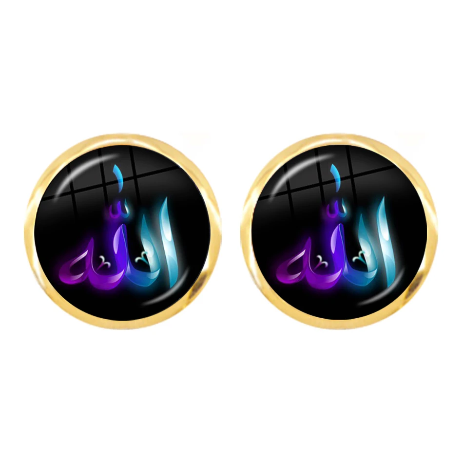 muslim islamic allah symbol stud earrings islam arabic 12mm glass cabochon jewelry for women girls llaveros religious gift