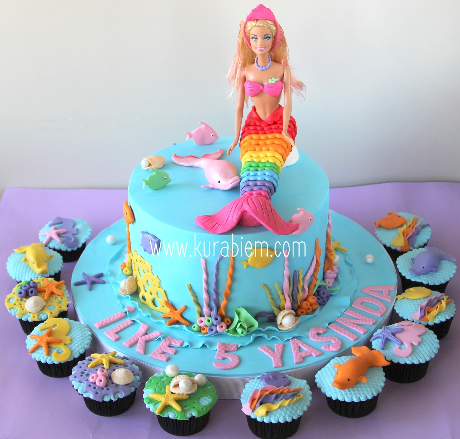 kurabiem ilke nin deniz kizi temali pasta ve cupcakeleri