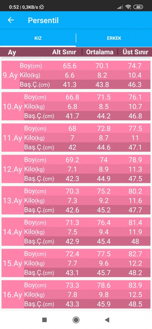bebek gelisim tablosu boy kilo cetveli