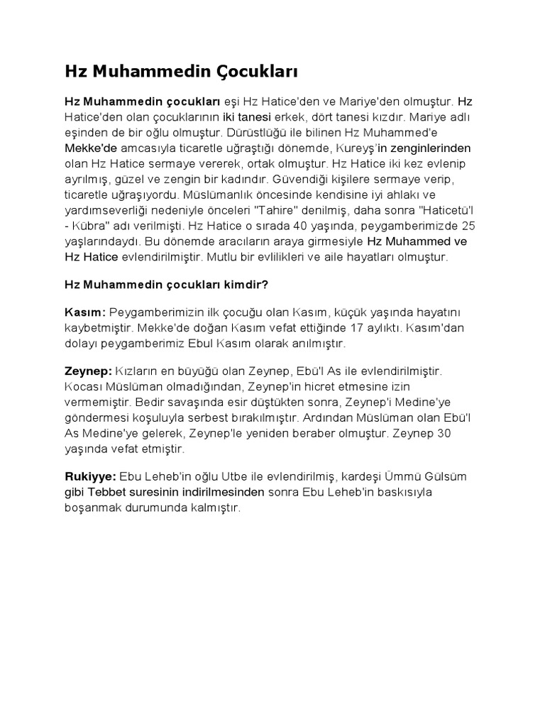 peygamber efendimizin cocuklari hz